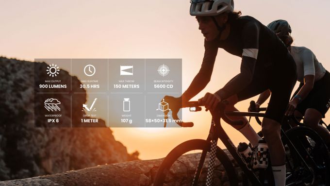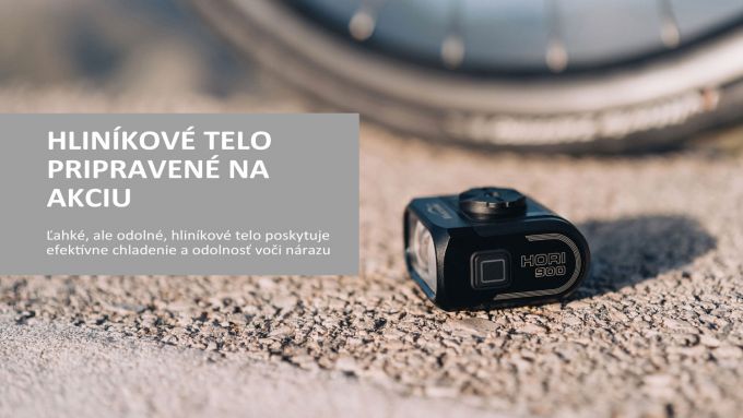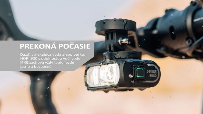 Kompaktné. Výkonné. InteligentnéHORI 900 je moderné predné svetlo na bicykel navrhnuté pre každodenné dochádzanie, cestnú cyklistiku aj mestské jazdy. S výkonom až 900 lúmenov, integrovaným denným svetlom (DRL) a inovatívnym uchytením nad aj pod riadidlá, poskytuje maximálnu viditeľnosť, bezpečnosť a elegantný vzhľad.________________________________________Hlavné vlastnosti:• Výkonný lúč bez oslnenia – presne tvarovaný lúč s nízkym výrezom osvetľuje cestu, ale neoslňuje protiidúcich.• Nezávislé denné svetlo (DRL) – režimy konštantného svietenia a hyper-blikania pre zvýšenú viditeľnosť cez deň.• Duálne uchytenie – možnosť montáže nad aj pod riadidlá, vrátane kompatibility s Garmin a Wahoo cyklopočítačmi pre čistý kokpit.• Ovládanie na diaľku – možnosť spárovať s diaľkovým ovládačom MJ-6558 (predáva sa samostatne) a zadným svetlom s technológiou FTR LightSync.• Smart funkcie cez aplikáciu Magicshine – prispôsobenie režimov a intenzity svietenia až do 20 profilov.• Odolná konštrukcia – hliníkové telo, vodotesnosť IPX6 a vynikajúce chladenie.• Rýchle nabíjanie cez USB-C – batéria s kapacitou 2000 mAh vydrží až 30,5 hodín podľa zvoleného režimu.________________________________________Technické parametre:Parameter HodnotaMaximálny výkon 900 lúmenovDosvit až 150 metrovVýdrž batérie až 30,5 hodínNabíjanie USB-C (2,5 hodiny)Hmotnosť 107 gMateriál Hliník + plastVodoodolnosť IPX6Rozmery 58 × 50 × 32 mm________________________________________Obsah balenia:• Svetlo HORI 900• GoPro adaptér• Wahoo adaptér• Dekoratívny kryt• Kľúč Torx 3 mm• USB-C nabíjací kábel• Používateľský manuálVoliteľné príslušenstvo (predáva sa samostatne):• Diaľkový ovládač MJ-6558• Držiak pred riadidlá________________________________________HORI 900 je dokonalým spojením výkonu, bezpečnosti a štýlu pre moderného cyklistu. Zostaň viditeľný. Jazdi bezpečne. Vyzeraj dobre.