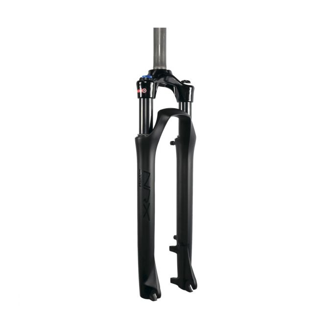 Vidlica NRX-D, vzduchová, lockout LO - možnosť uzamknutia vidlice na horných nohách, veľkosť kolies 700C - 28", zdvih 63mm, krk rovný - TS 1-1/8", farba čierna matná.